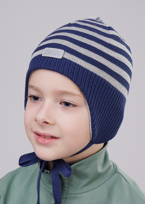 Детская шапка с удлиненными ушами на завязках, декорирована светоотражающей нашивкой в центральной части и светоотражающей "петлёй" в верхней части изделия. Внутри хлопковый подклад (95% хлопок, 5 % эластан), а в области ушей дополнительное утепление- ветрозащитная мембрана.
