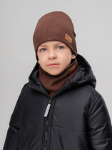 Демисезонная шапка для мальчика из мягкой гипоаллергенной акриловой пряжи. Шапка двойная, выполнена  переплетением "резинка" 2х2. Комфортное прилегание, высококачественные материалы обеспечивают защиту от холода и хороший теплообмен.