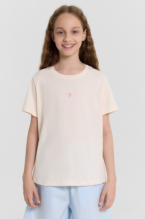 Модная футболка для девочек, выполненная из хлопковой трикотажной кулирки. Силуэт прямой. Перед и спинка без швов и рельефов. Рукава короткие, вырез классический – круглый, не глубокий. Стильная футболка с ярким дизайном!