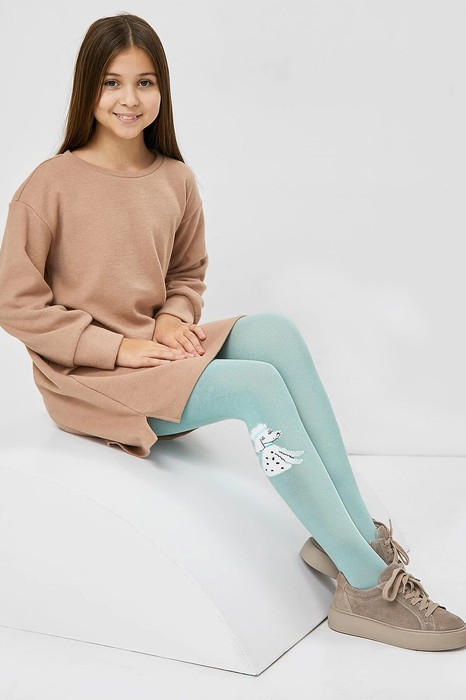 Гладкие колготки с плюшевым следом и рисунком в виде пуделей.