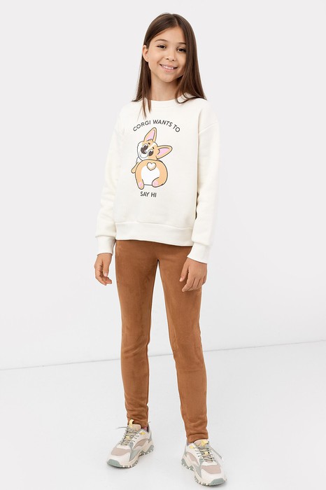 Стильные леггинсы для девочек. Передняя часть выполнена из трикотажного полотна под замшу, задняя – из трикотажного полотна академик. В поясе – жаккардовая эластичная тесьма, отогнутая внутрь. Слегка завышенная посадка дарит комфорт. Нижние срезы с плоскими швами. Функционально и комфортно!