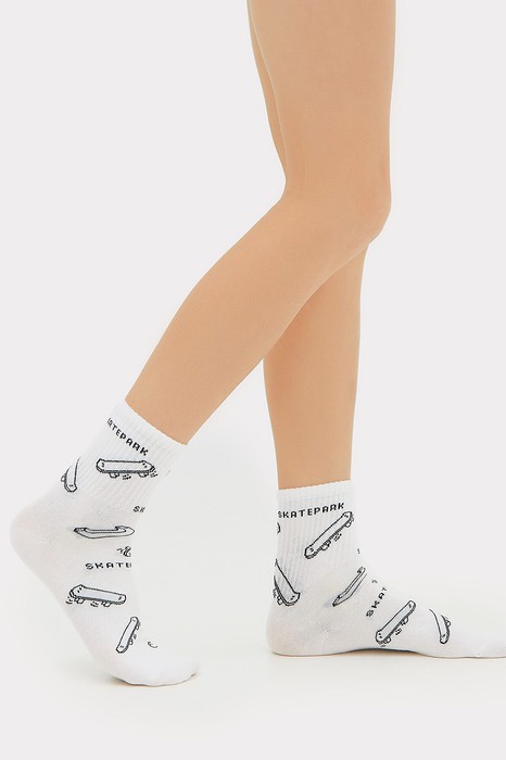 рис.2709 Детский носок с высоким плотным бортом и рисунком в виде скейтбордов.