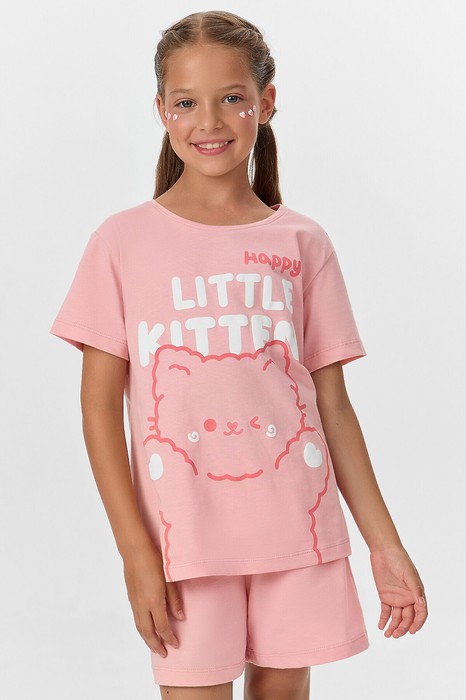 Комплект для девочки, состоит из футболки с короткими рукавами и шорт из натурального хлопка. Подходит для сна и отдыха. Материал очень приятный к телу, хорошо пропускает воздух, что позволяет чувствовать себя комфортно даже в жаркую погоду. Идеальный выбор детской одежды для дома. Стильно, красиво, комфортно. Футболка декорирована интересным принтом, шортики однотонные. Широкий размерный ряд, базовые и яркие расцветки, модели с принтами, рисунками и печатями. Купите детскую пижаму для девочки от Mark Formelle, порадуйте ребенка красивым и стильным подарком!