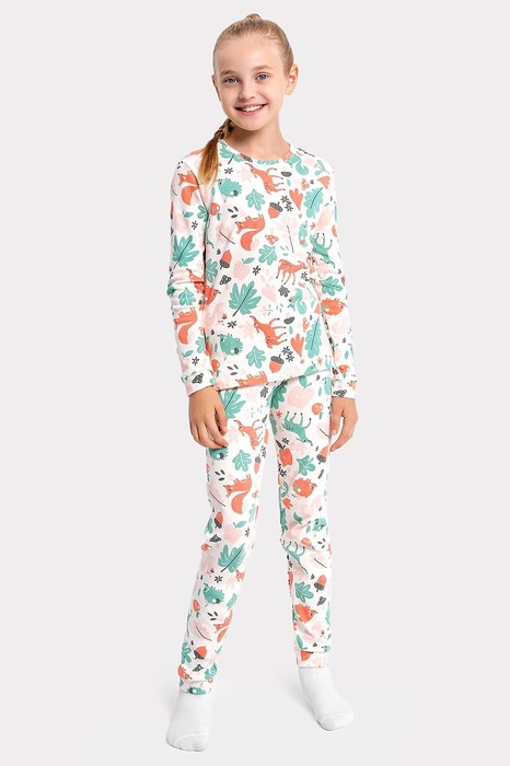 Комфортная хлопковая пижама из трикотажного интерлока. Включает классический лонгслив и брюки прямого силуэта. Круглая горловина, втачные рукава на широких манжетах, как и брючки. Отличная пижама – уютная, натуральная, стильная