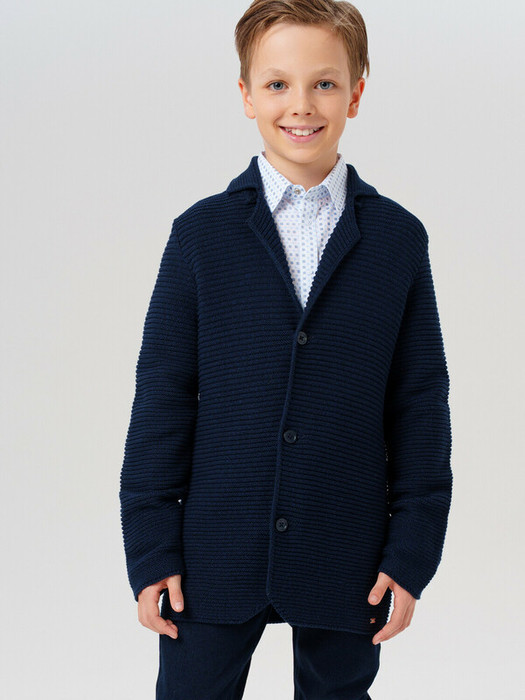 Стильный школьный темно-синий кардиган на пуговицах для мальчика-подростка.