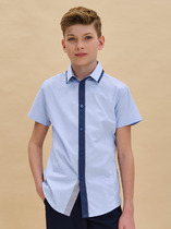 Блузка для девочек. свободного силуэта из ткани. По переду обработана застежка на пуговицы d=10mm и петли. Рукава короткие, втачные, слегка спущены. Нижние срезы изделия и рукавов обработаны швом в подгибку.