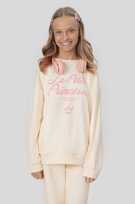 Джемпер свободного силуэта. Рукава длинные, втачные. Линия плеча спущена. Перед и спинка цельнокроенные. Горловина круглой формы обработана обтачкой из рибаны. По низу рукавов и джемпера притачены манжеты и пояс из рибаны.