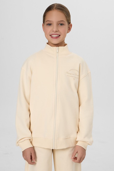 Стильная толстовка для девочек — это практичный и комфортный элемент гардероба, который станет незаменимым спутником в любое время года. Модель выполнена из футера без подчеса и имеет спущенное плечо, что придает ей стильный и современный вид. По низу рукавов — отрезные манжеты из рибаны, а отрезной пояс также выполнен из рибаны, что обеспечивает плотное и комфортное прилегание к фигуре. Застежка-молния позволяет легко надевать и снимать толстовку, делая ее удобной в использовании. Высококачественный хлопок в составе изделия обеспечивает мягкость и долговечность. А универсальный дизайн позволяет сочетать эту толстовку с различными элементами гардероба, создавая стильные повседневные образы. Она станет отличным вариантом как для занятий спортом, так и для прогулок с друзьями. Рекомендуем!