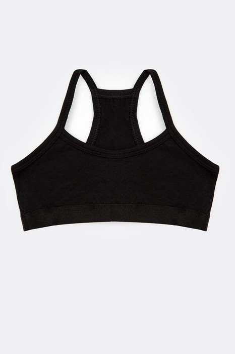 Бюстье из трикотажной кулирки. Горловина округлой формы. Спинка фигурная, как в спортивном топе. Все срезы окантованы бейкой из основного полотна. По нижнему срезу настрочена жаккардовая эластичная тесьма.