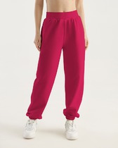 Джоггеры свободного кроя с боковыми карманами, собранные внизу. Широкий эластичный пояс со шнуром.