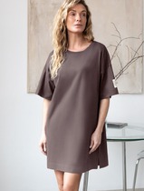 Boyfriend крой, круглый вырез. Втачной рукав. Горловина из рибаны. отстрочена по переду. Плечевые швы и шов горловины спинки укреплены бейкой из основной ткани.