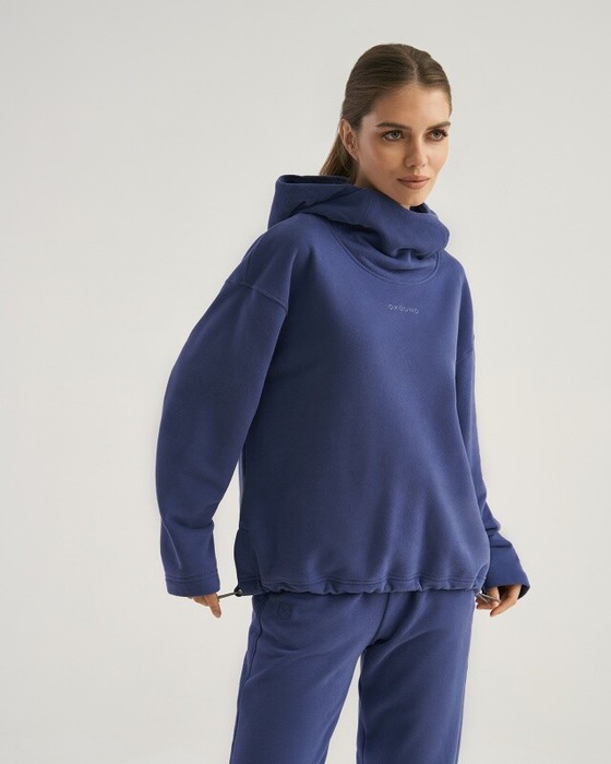 Худи Oversize. Двойной объёмный капюшон. Рукав втачной. В боковых швах разрезы. По низу кулиска с резиновым фиксирующимся шнуром