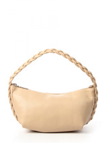Элегантная форма хобо с декоративными ремнями и металлической фурнитурой представлена в классическом бежевом оттенке.