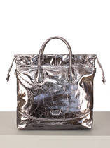 Его скруглённо-прямоугольная форма с рельефной фактурой кожи создаёт выразительный, но лаконичный силуэт. Передняя деталь с карманом на магните и тиснением подчёркивает трендовый характер модели, а боковые карманы на молнии (с кожаными наконечниками) добавляют практичности.