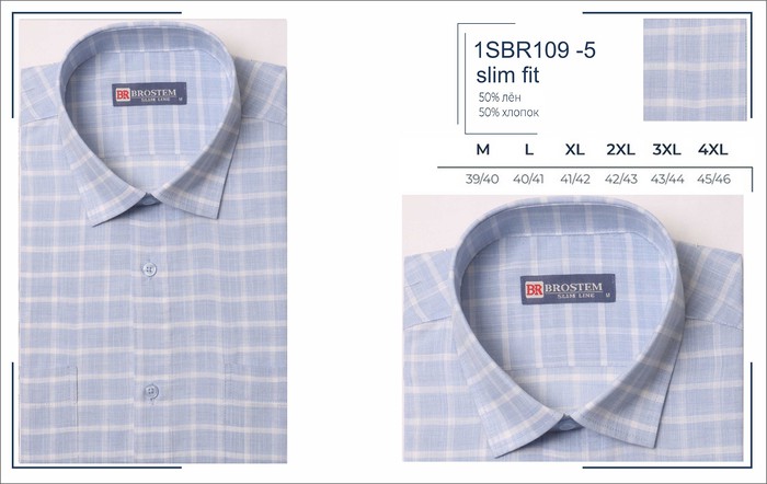 Совместные покупки Уфа Мужская одежда Рубашки — 1SBR109-5s* Сорочка мужск.полу.притал. кор. рукав, BROSTEM