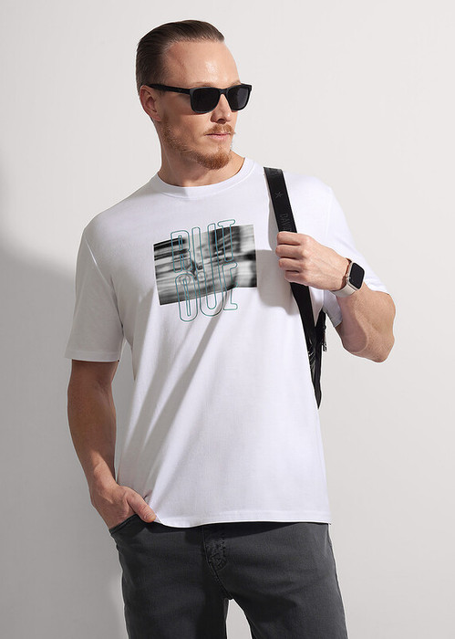 Стильная мужская футболка oversize из хлопкового полотна. Изделие со спущенной линией плеча, удлиненным рукавом, дополнено графичным принтом спереди. Отлично подходит для прогулок и встреч с друзьями.