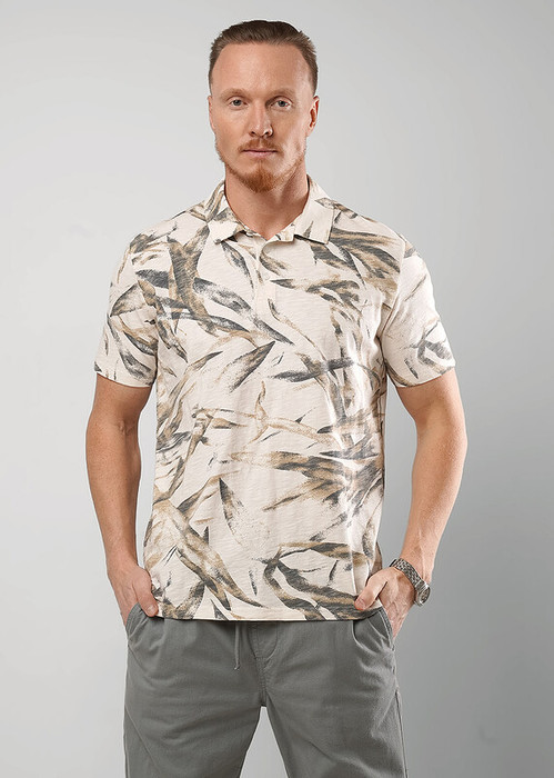 Футболка поло с манжетами и воротником из хлопкового полотна с набивкой. Функциональная планка на 3 пуговицы. Отличное решение для похода на работу и создания образа в стиле casual.