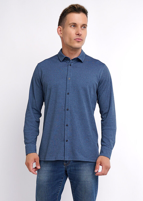 Классическая рубашка из ""пике"" с кроеным отложным воротником и планкой на пуговицах. Для удобства рукава с регулируемым манжетом. Изделие выгодно подчеркивают сдержанная фурнитура и лаконичный принт в области груди. Элегантное решение для офиса и города.