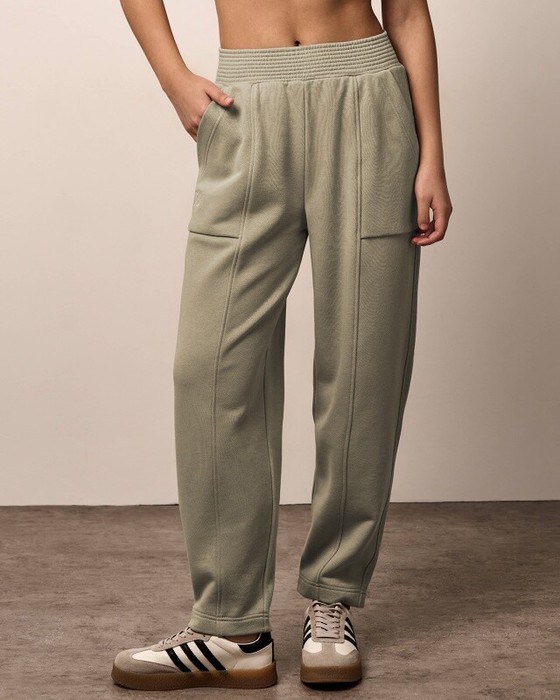 Брюки-бананы. Передние половинки брюк со швом. Накладные карманы по передним боковым половинкам брюк,между швами. Пояс из основной ткани, отстрочен.