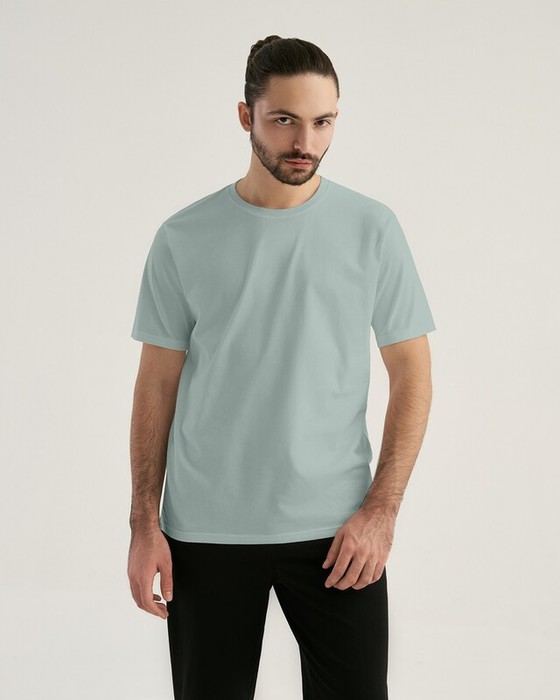 Классическая мужская футболка прямого силуэта. Горловина окантована рибаной
