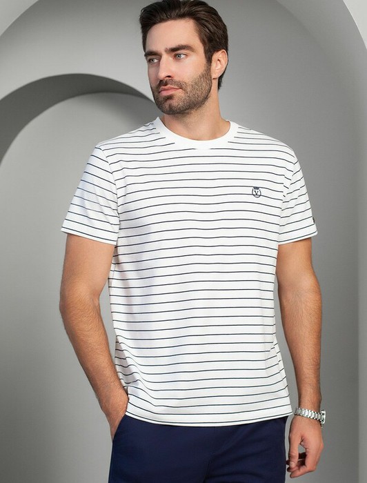 21.04 Vilatte Футболка из премиального хлопка с эластаном U49.024 белый-синий