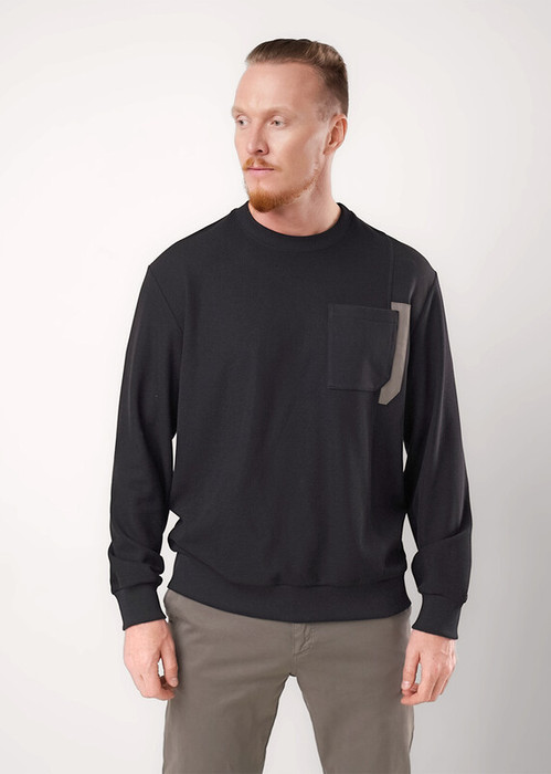Стильный мужской комбинированный джемпер из трикотажного фактурного полотна. Изделие с круглым вырезом горловины и длинным рукавом на манжете. Модель дополняется нагрудным карманом. Отличный вариант на каждый день и встреч с друзьями.