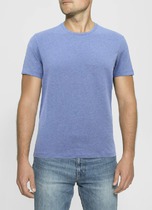 Базовая однотонная футболка стандартного объема с круглой горловиной, втачным рукавом из хлопкового меланжевого полотна с добавлением эластана. Является неотъемлемой частью мужского гардероба.