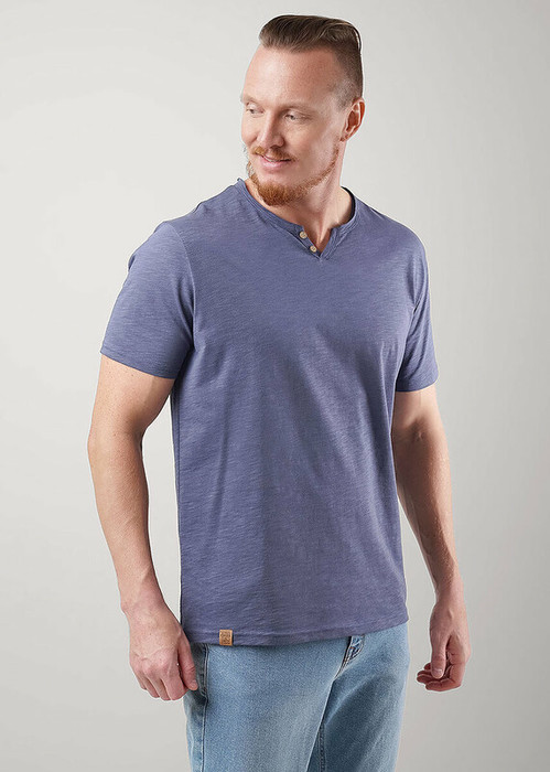 Футболка мужская с округлой горловиной и планкой из фактурного полотна ""флам"". Данная модель прекрасно комбинируется с джинсами или шортами. Отличное решение на лето для прогулок с друзьями или поездки на отдых.