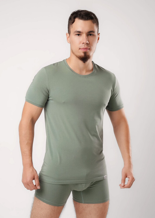 Стильная мужская футболка из модала с коротким рукавом и имиджевой нашивкой.