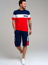 Комплект мужской состоящий из футболки и брюк. Футболка из трикотажного полотна с коротким рукавом и фигурной горловиной, спереди авторский принт. Брюки из трикотажа с набивкой на широком поясе с резинкой и регулируемым шнуром, по бокам удобные карманы.