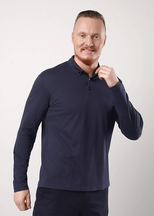 Рубашка-поло с длинным рукавом. Изделие выполнено из трикотажного полотна с кроеным отложным воротником. Модель дополнена имиджевой фурнитурой. Такая рубашка-поло отлично сочетается с брюками или джинсами.