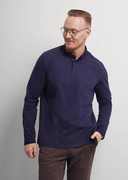Рубашка-поло с длинным рукавом. Изделие выполнено из трикотажного полотна с кроеным отложным воротником. Модель дополнена фурнитурой. Такая рубашка-поло отлично сочетается с брюками или джинсами и подходит для учебы.