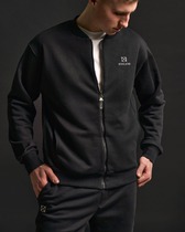 Мужская куртка на молнии из трикотажного полотна с капюшоном на подкладе. По капюшону резинка со стопором, спереди удобные наклонные карманы. Куртка на поясе и с манжетами. Дополнена фирменной фурнирурой.