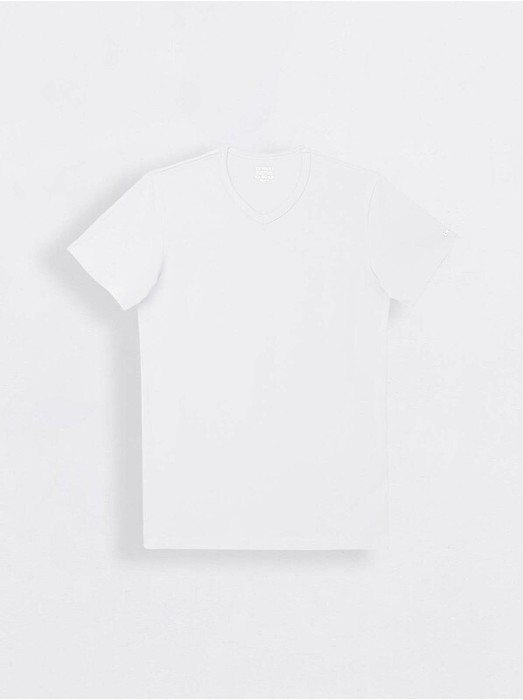 Однотонная футболка из хлопка с коротким втачным рукавом и V-образным вырезом горловины создана, чтобы стать основой для лаконичных повседневных образов.
