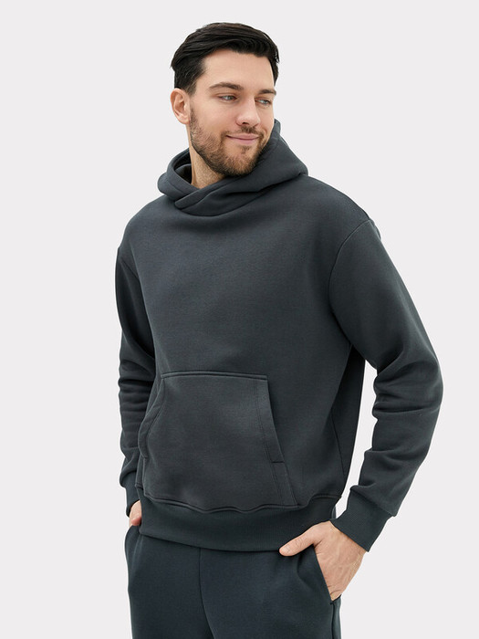Мужское худи из трикотажного футера с теплым подчесом. Удобный карман-кенгуру, круглая горловина с капюшоном, длинные рукава на манжетах, спущенная линия плеча, пояс из рибаны – это худи удачно сочетает в себе комфорт, актуальный дизайн и качество!