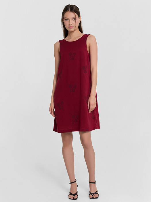 Платье A-силуэта силуэта, длиной мини. Горловина круглая, по спинке V-образной формы, углубленная. По вырезу настрочены декоративные элементы - бантики. Спинка со средним швом. На детали переда застрочены вытачки. Перед и спинка на подкладке из основной ткани. Нижний срез обработан швом вподгибку.
