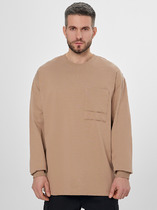 Свитшот свободного силуэта. Горловина округлой формы, обработана обтачкой из рибаны. Шов втачивания обтачки по спинке закрыт тесьмой. Рукава втачные длинные, 2х шовные. С отрезными манжетами из рибаны. Линия плеча спущена. Плечевые швы смещены в сторону спинки и переходят в локтевой шов рукава. По низу отрезной пояс из рибаны.