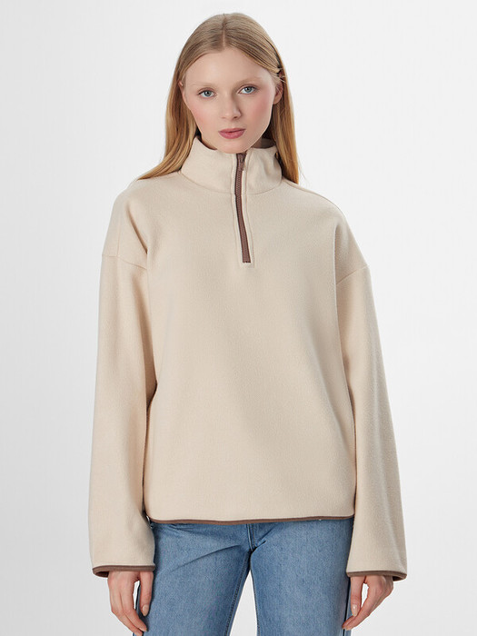 Женская толстовка из мягкого флиса станет уютным дополнением вашего гардероба. Свободный крой с круглой горловиной и стойкой обеспечивает комфорт в течение всего дня. Застежка-молния по центру и мягкие спущенные плечи создают расслабленный силуэт, не сковывающий движений.