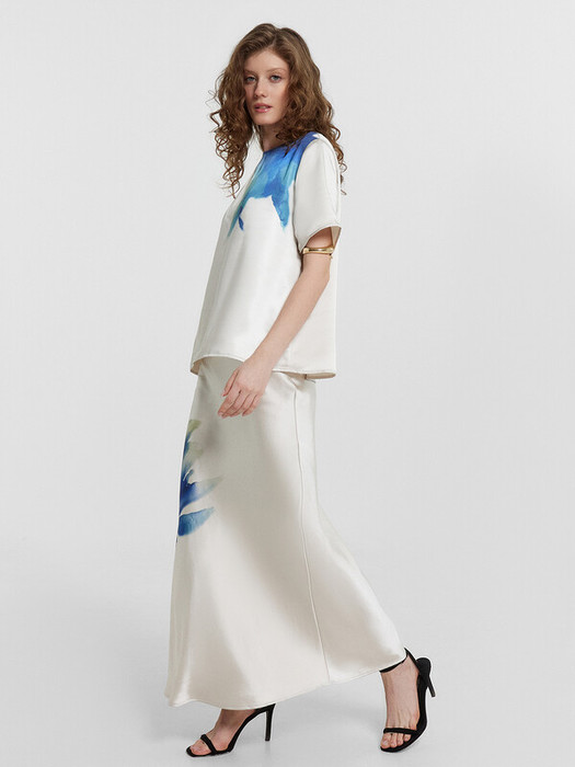 Юбка прямого силуэта, со средней посадкой длиной макси. Крой по косой. По верхнему срезу притачана эластичная тесьма (внутренняя 20мм 20RV), завернутая внутрь. Нижний срез обработан швом вподгибку с закрытым срезом.