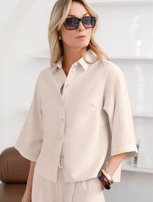 22.03 Vilatte Блузка с широкими рукавами 3/4 из плотного лиоцелла D29.354 кокос