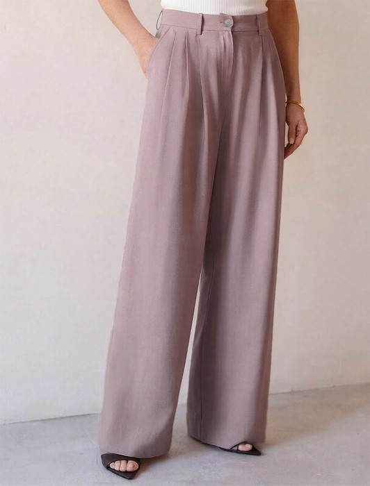 Совместные покупки Уфа Женская одежда Брюки — 22.03 Vilatte Брюки палаццо с защипами из плотного лиоцелла D24.313 зефирно-роз