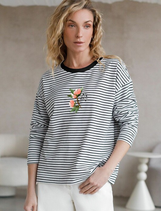 27.03 Vilatte Лонгслив с принтом из премиального хлопка с эластаном D49.148 бел