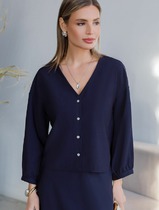 Совместные покупки Уфа Женская одежда Блузки, рубашки — 22.03 Vilatte Укороченная блузка с коротким рукавом из джинсового лиоцелла D59.