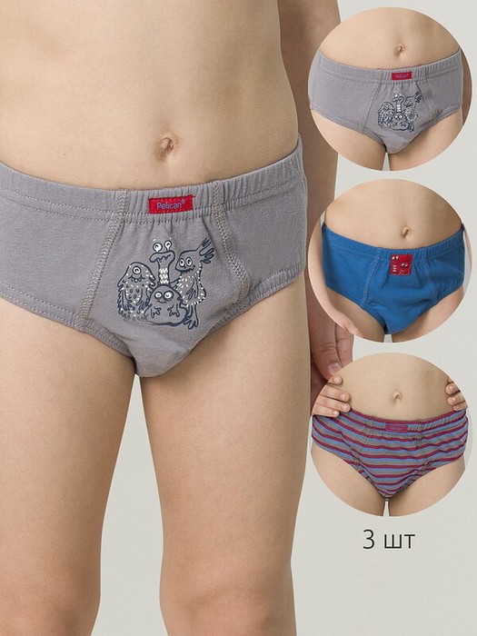Совместные покупки Уфа Детская одежда Трусы — 22.04 Pelican Трусы для мальчиков BULB3302(3) Джинс/красный/серый
