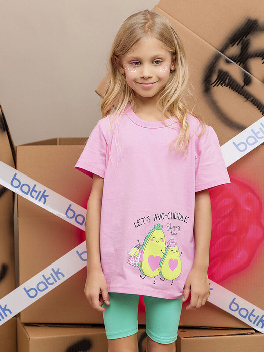 Футболка для девочки с коротким рукавом в розовом цвете. Детская футболка с принтом в виде авокадо выполнена из натурального хлопка, что обеспечивает комфорт и безопасность для кожи. Подойдет для повседневной носки дома, в детском саду, на прогулки и спортивные секции.Характеристики:Ткань: 100% хлопокПроизводитель: batik