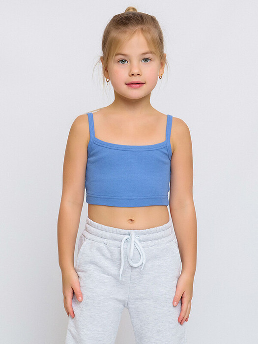 Топ (майка) в голубой расцветке для девочки из кашкорсе. Укороченная майка на тонких бретелях. Легкий топик из легкой, приятной к телу ткани отлично держит форму, обеспечивает хорошее прилегание к телу и не стесняет движений.Характеристики:Ткань: Кашкорсе 95% хлопок 5% эластанПроизводитель: batik