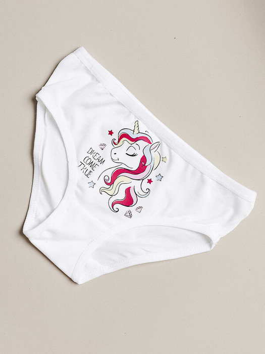 Трусы слипы для девочки белые из супрема пенье с принтом в виде единорога, на мягкой резинке. Выполнены из мягкого, приятного на ощупь хлопка, который обеспечивает комфорт и не раздражает кожу. Идеально подойдут для повседневной носки.Характеристики:Материал: Супрем пенье 92% хлопок 8% эластанПроизводитель: batik