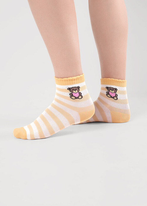 облегченные носки плетение сетка для девочки в полоску с рисунком мишки на паголенке