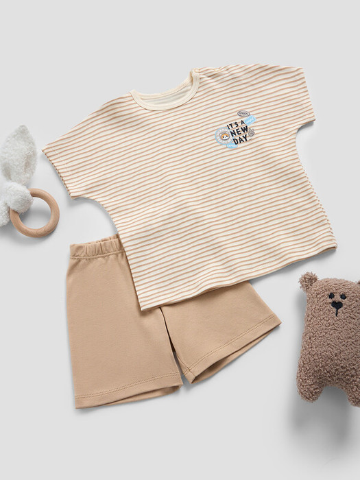 Комплект полностью выполнен из трикотажного полотна интерлок в рубчик 100% хлопок, 215 гр/м2, 145 см (INT-143, INT-001.01.215).