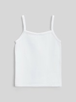 Майка прилегающего силуэта для девочек. Выполнена из модной трикотажной рибаны – в рубчик. В составе полотна преобладает натуральный хлопок. Модель на тонких бретелях, с неглубоким V-образным вырезом. Рекомендуем!